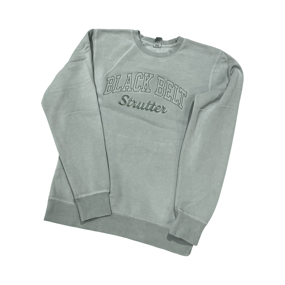 Soft and comfy women’s crewneck in pigment sage color. Features classic Black Belt Strutter design with a timeless, relaxed fit — a perfect blend of comfort and style.